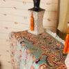 Colour: Aqua blue base with cream, maroon, and gold accents