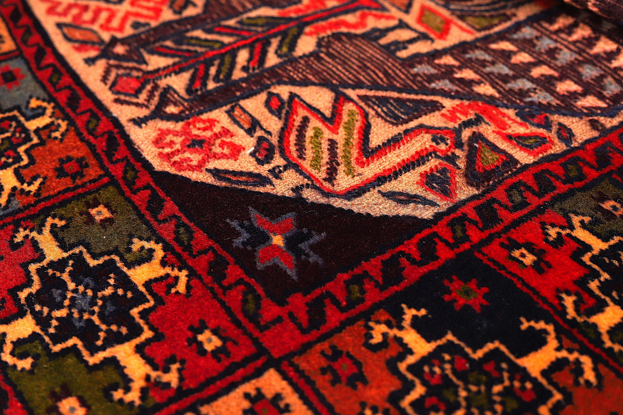 This particular rug showcases deep reds, burnt oranges, earthy browns, and dark navy accents, forming repeating tribal motifs that are characteristic of Kalati designs. The intricate patterns highlight the cultural storytelling of Afghan artisans, featuring stylized shapes, symbolic emblems, and symmetrical layouts woven with precision.