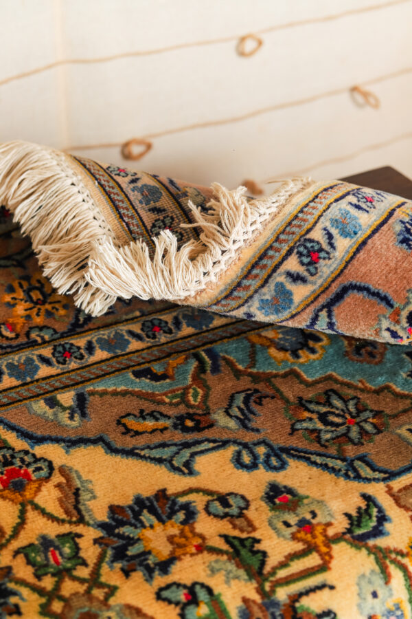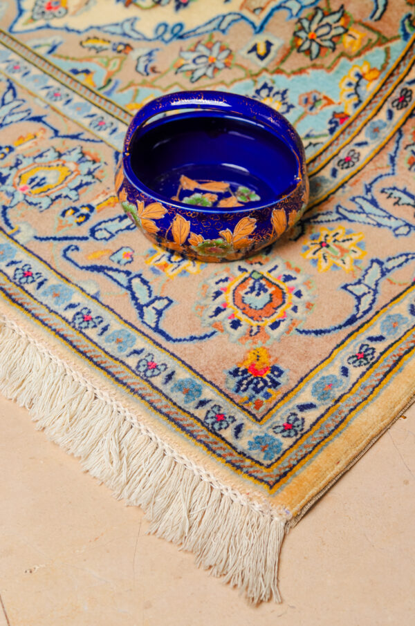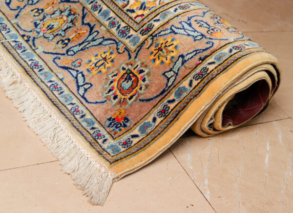 This exquisite Irani Kashan rug embodies the timeless artistry of traditional Persian weaving, renowned worldwide for its sophistication, craftsmanship, and rich cultural heritage. Originating from the historic city of Kashan, one of Iran’s oldest and most celebrated carpet-weaving centers, these rugs are valued for their luxurious wool, intricate floral patterns, and beautifully balanced colour palettes.